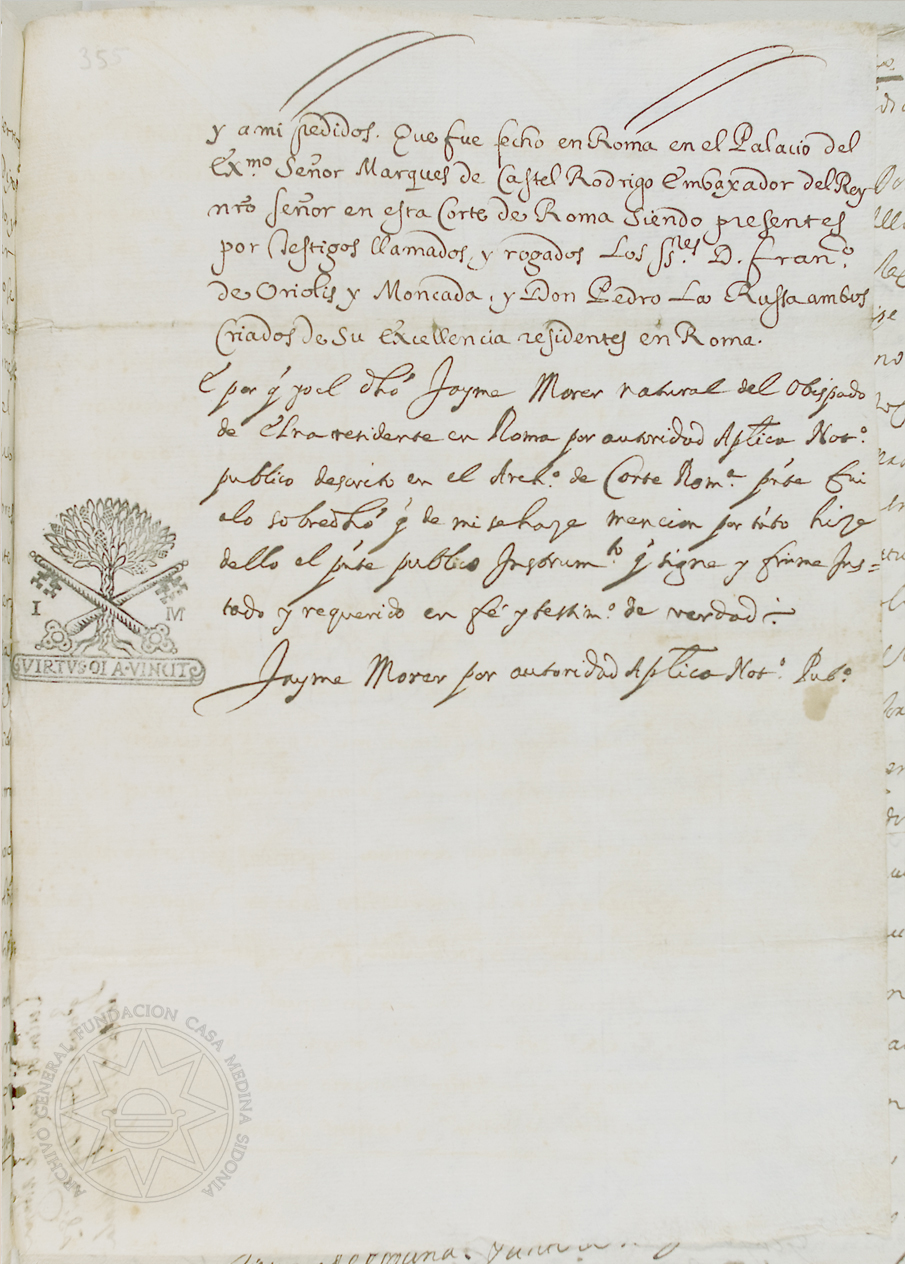 Resumen Título de la unidad: Luis de Moncada, príncipe de Paternó, duque de Montalto y Bivona, es nombrado albacea testamentario por el Duque de Alcalá, su suegro, que cede sus derechos a los demás albaceas por encontrarse desempeñando su cargo en Sicilia. Fondo: Montalto. Signatura: AGFCMS, leg. 147, doc. 46. |